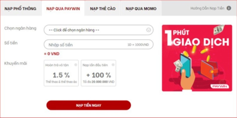 Nạp tiền RED88 thông qua hệ thống Paywin