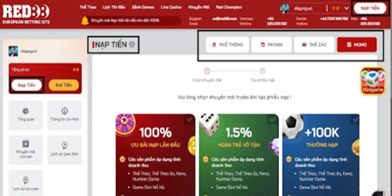 Nạp tiền RED88 vào nhà cái thông qua Momo